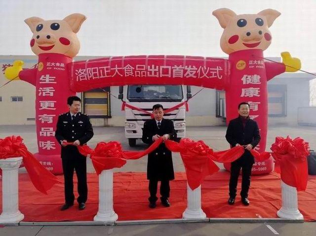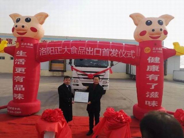 洛阳正大食品出口香港的首车肉制品,