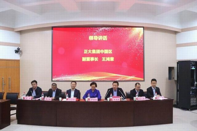王鸿章副董事长在致辞中介绍了正大集团是泰籍华人创办的外商独资企业,成立于1921年,集团以种子起家、经过百年的发展,集团形成了以农牧食品、零售、电信三大事业为核心的产业布局,在河南区紧紧围绕农牧食品板块,涉足零售、工业、房地产、制药等多个行业企业数量达28家。多事业的发展更需要人才的支持,近几年,正大与河南农业大学等省内***院校在人才培养、科研共建、毕业生就业等方面进一步加强合作,为学校毕业生提供一站式人才培养就业服务的愿望,也将为高校学子在就业创业方面提供一定资助,按照集团新事业发展、结合国务院李克强总理提出“双创”活动,集团愿意搭建平台、每年提供10万元的专项奖学金,同时每年可提供100万的资金、用来促进大学生创新创业。为学校人才培养、服务社会贡献力量。